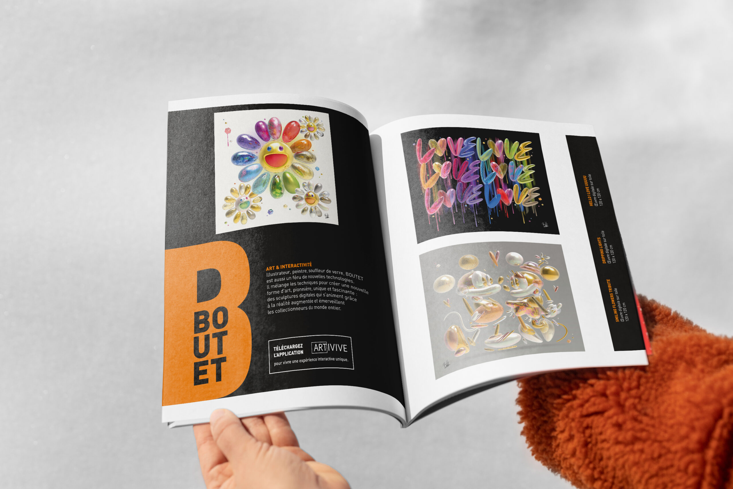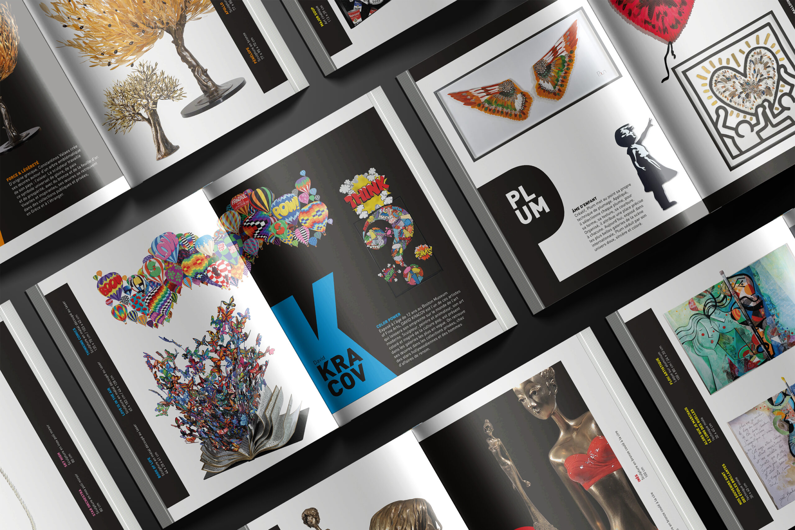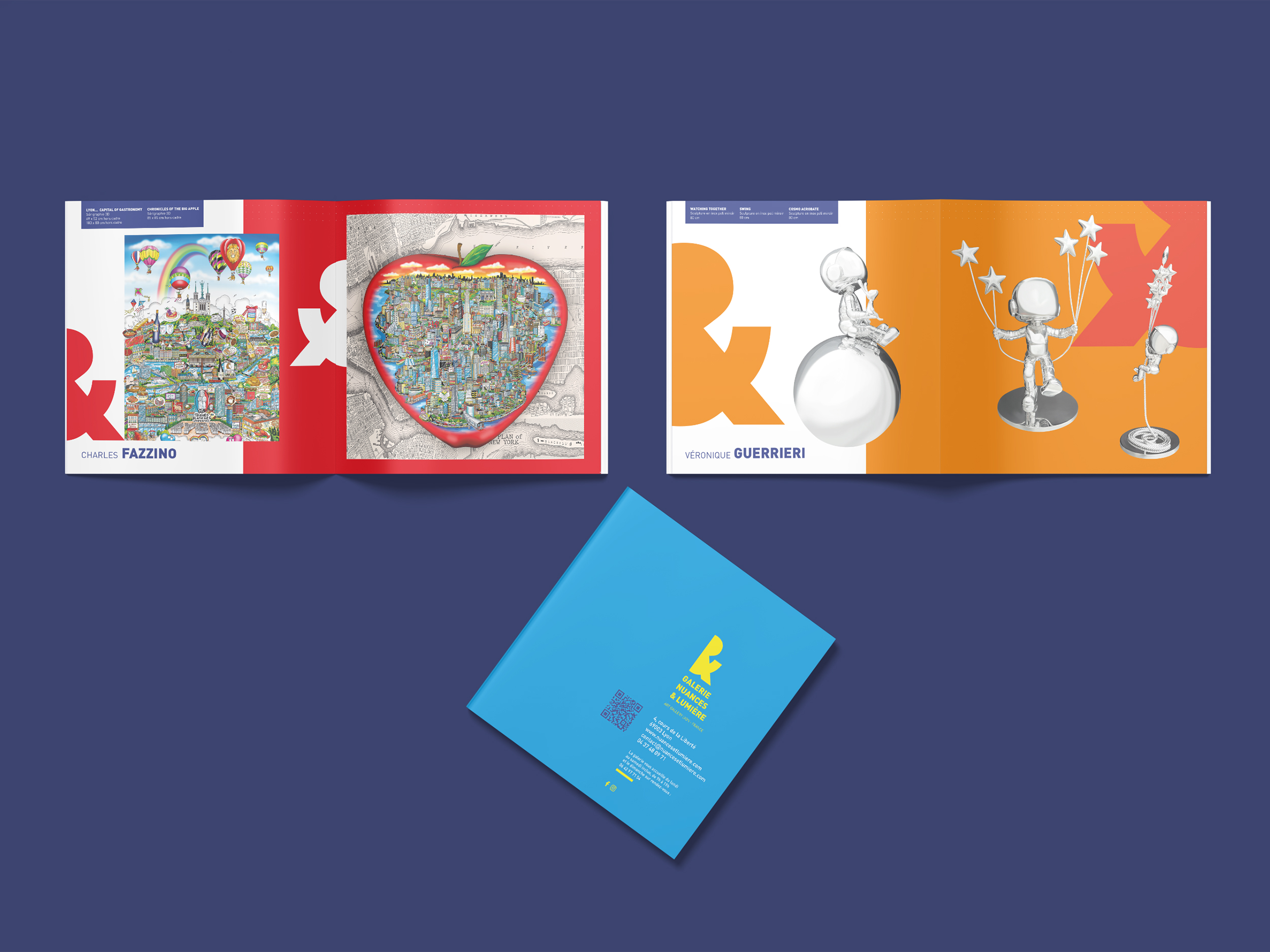 Régulièrement, Marion et Jonathan Azoulay, les propriétaires des lieux, mettent à l’honneur leurs artistes et sollicitent nos agences pour créer les catalogues d’exposition. Le premier d’entre eux rassemblait deux artistes, aux univers bien différents.